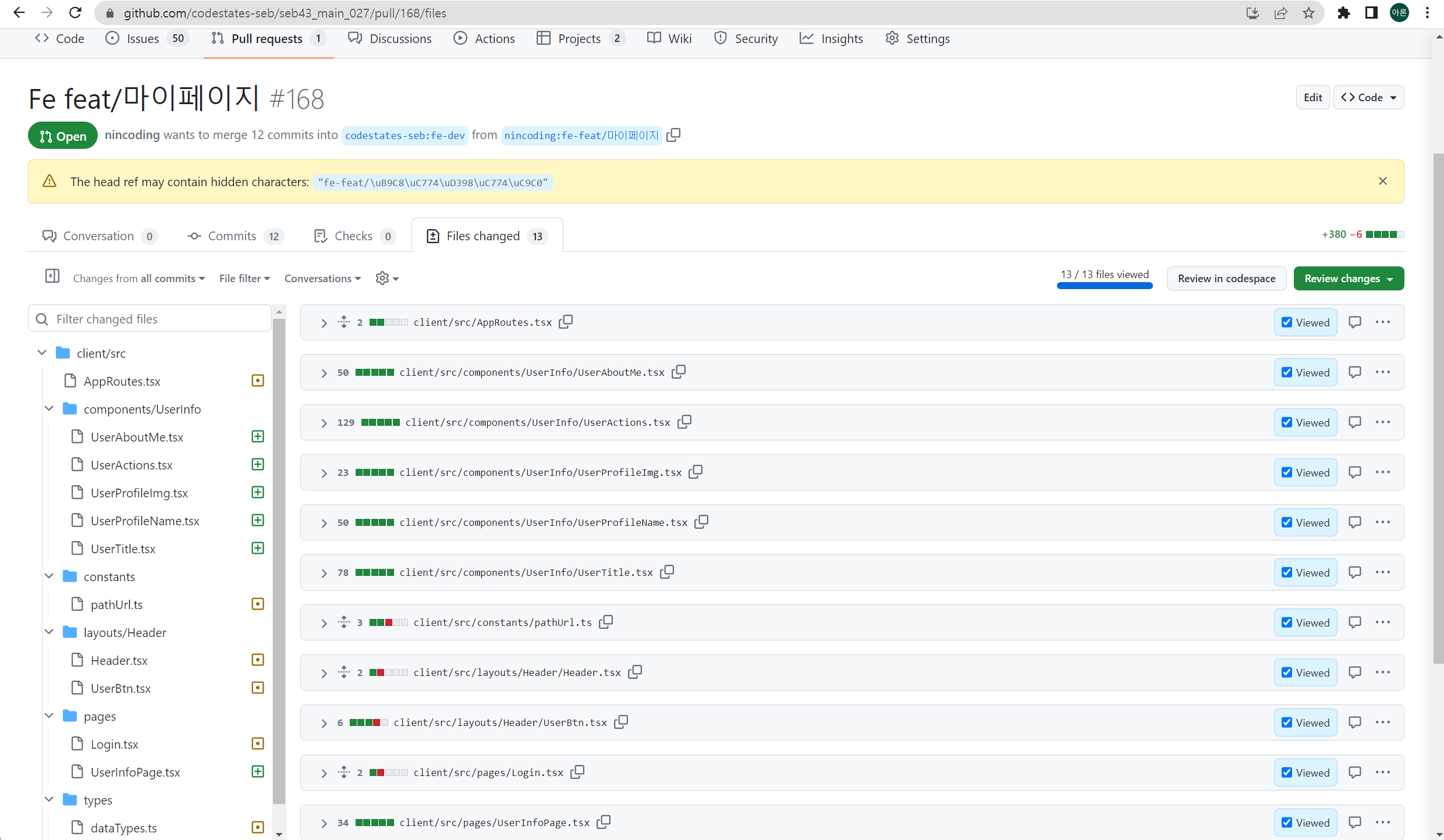 이렇게 풀리퀘 코드도 확인했다고 표시해주고.. ㅋㅋㅋㅋ