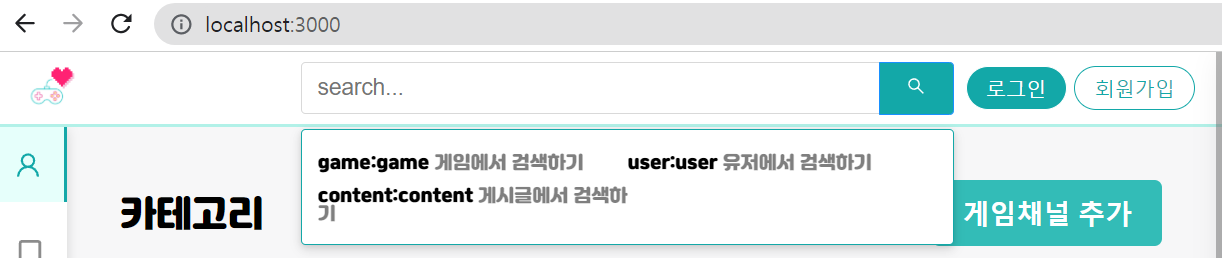 이런 구조로 만들고, SearchGame부터 하나씩 만들어서 일단은 검색결과에 세 가지를 다 보여주도록 하고, 추후에 각각 검색힌트 선택에 따라 보이고 안보이고 나눠서 렌더링하는 로직을 짜면 될 것 같다.
