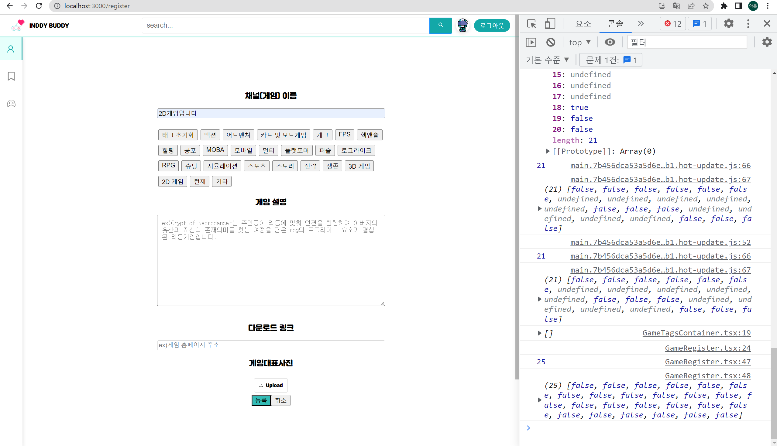 1. 자잘한 버그들 fix 및 게임등록 UI 수정,유효성 검사 부분 수정 ✅