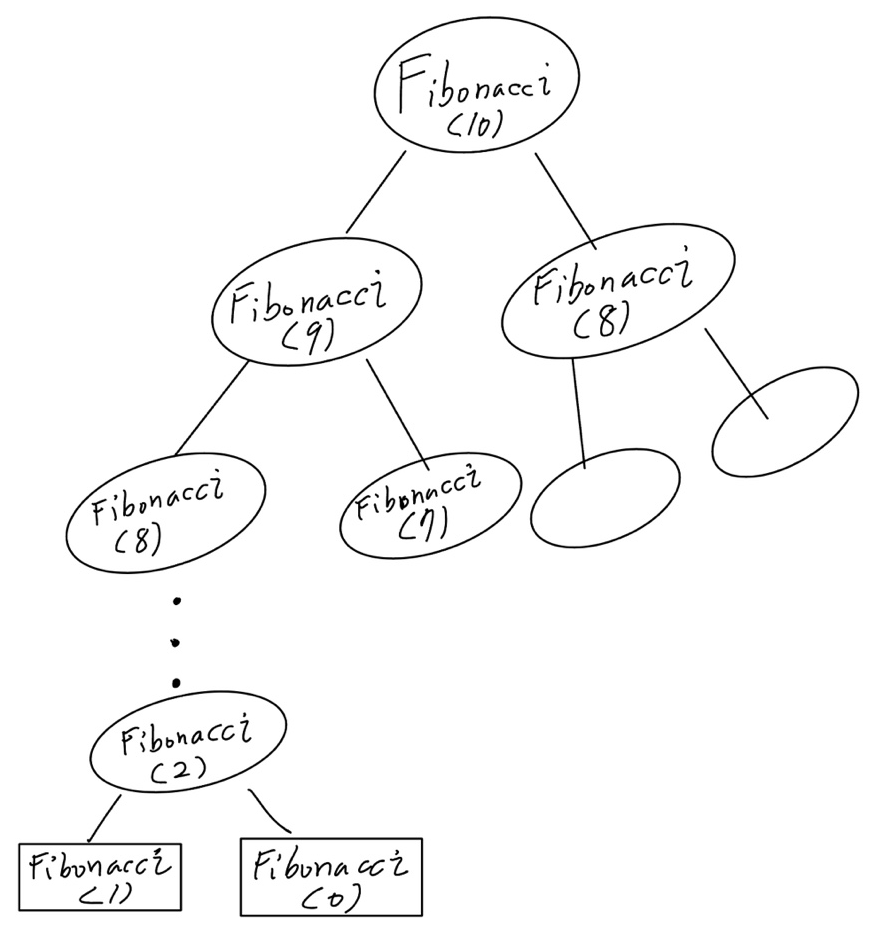 fibonacci(10) === fibonacci(9) + fibonacci(8) === fibonacci(8) + fibonacci(7) + fibonacci(7) + fibonacci(6) ...