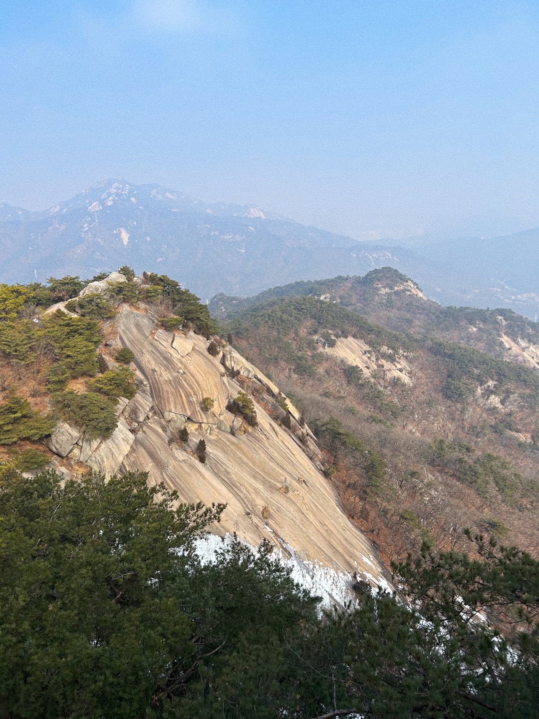 경사자체가 그렇게 높은 구간도 많이 없었고 바위를 직접적으로 올라가는 구간이 사패산보다 적었던 것 같아 훨씬 수월한 산행을 할 수 있었다. 무엇보다도 사패산은 아이젠을 끼고 얼음을 밟고 올라갔던 터라 직접적인 비교는 어렵다. 또한, 비교가 무슨 의미가 있을지 ㅎㅎ 잘 모르겠다.