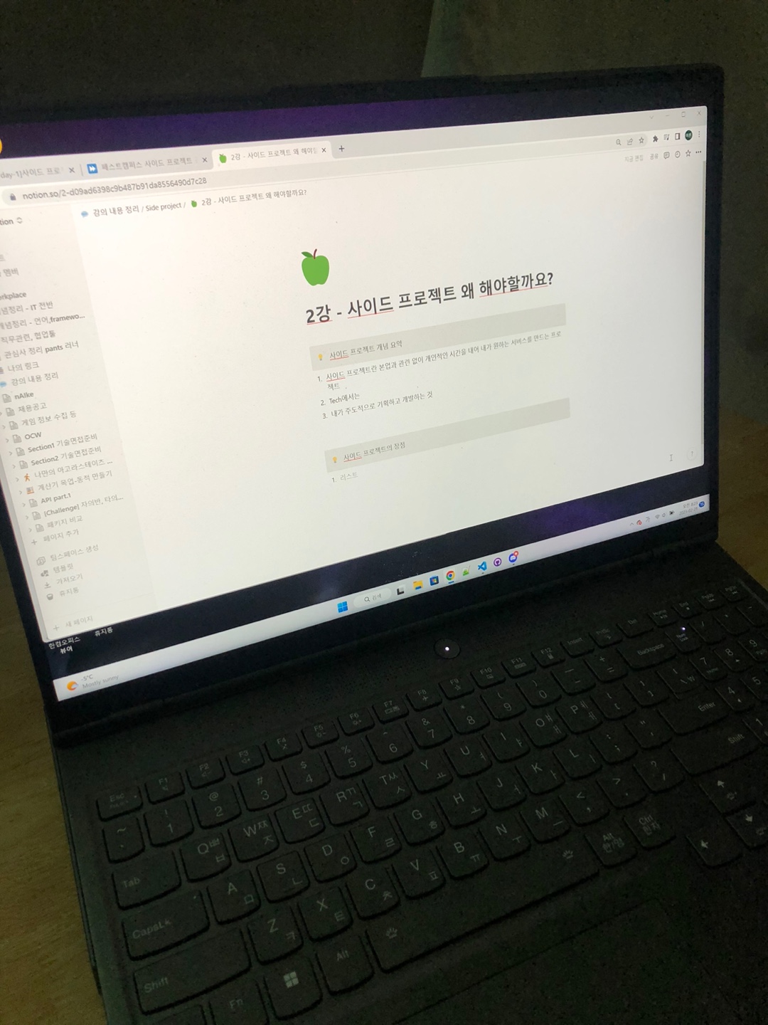 사이드프로젝트를 해야겠다고 의무감을 계속 가지고는 있었지만 사이드 프로젝트는 왜 해야하는지 의문이 생겼었는데 이번 강의를 통해 해소할 수 있었다.