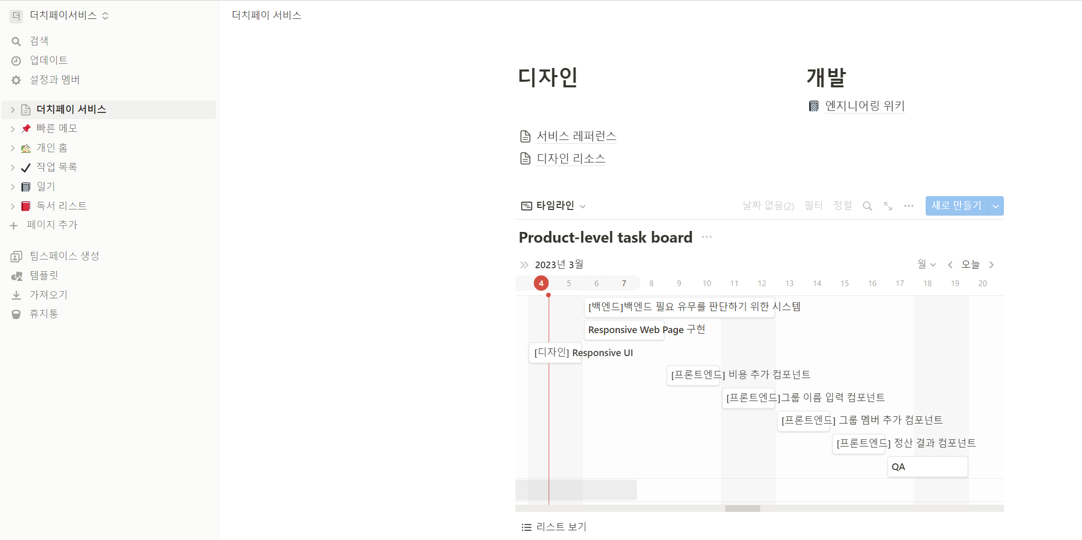 강사님의 일정은 실무와 근접하게 잡으신 것 같은데, 사이드 프로젝트임을 고려한 일정일 것이고 강의를 따라가면서 만드는게 아니라 길게 잡으셨는데 나는 강의수강계획과 거의 맞추면 될 것 같아서 다 짧게 줄였다.