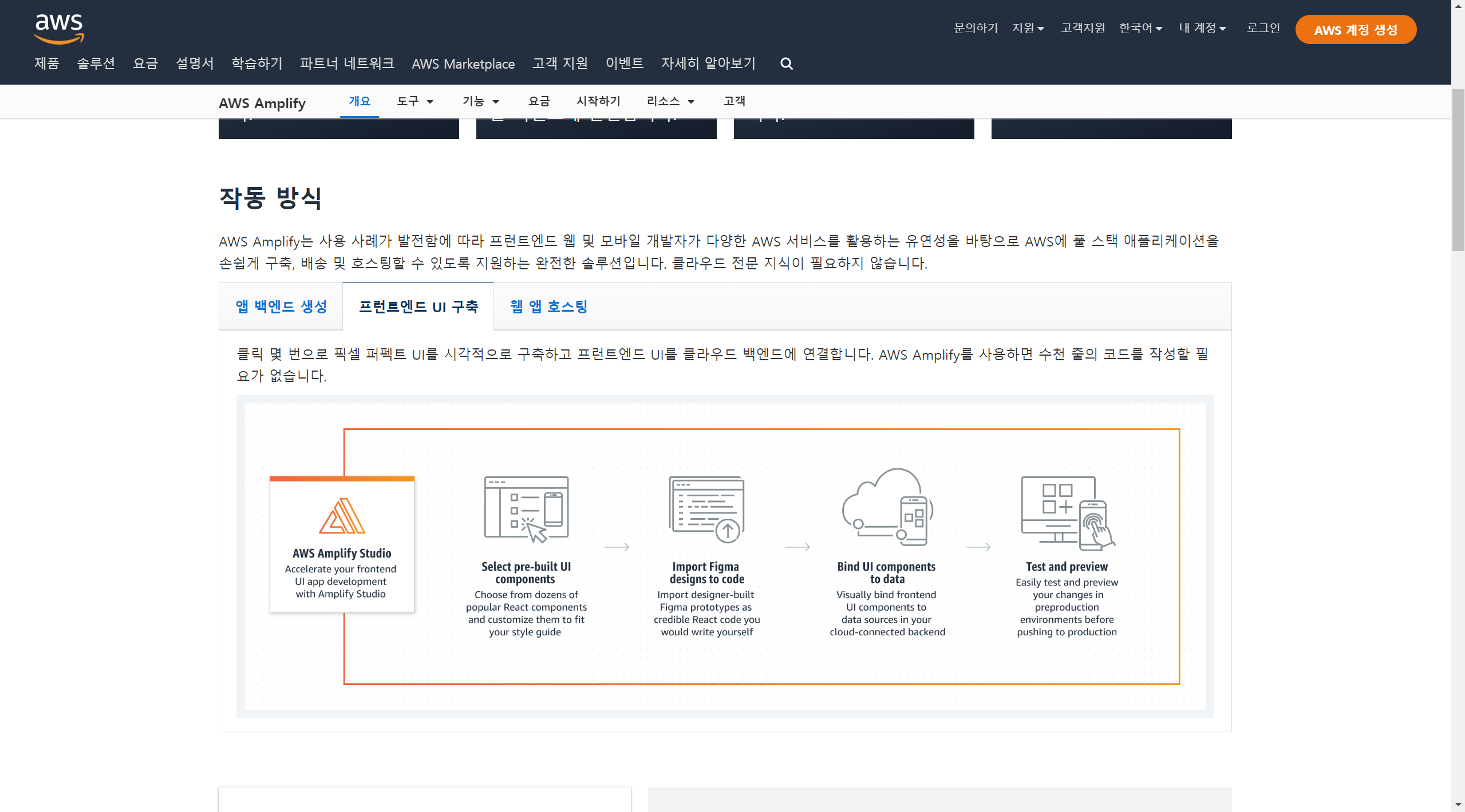 amplify 공식문서를 보라고 하셔서 들어가기 뭔가 조금 무서웠다... React 공식문서도 잘 되어있기는 하지만 술술 읽히지는 않았었기에.. 그런데!! 상품을 파는 입장이라 그런지 엄청나게 설명이 잘 되어있고, 한 문장만 읽어도 어떤 기능을 제공하는지 파악할 수 있어서 좋았다.