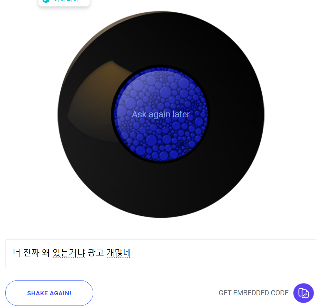 Magic eightBall이 무엇이냐... 이런 단순한 포츈텔링 게임이다.
