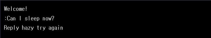 switch 문을 사용하여 random한 값을 가지는 value를 이용하여 8가지 정도 선택지 중에 랜덤한 대답이 나오도록 구현하였다. 그런데 아직은 input창에 입력받아서 하는 것도 아니고 그냥 내가 입력값 변수 만들어서 그 값을 수동으로 바꾸는 수준으로 구현되었다.(내 코딩실력이 퇴보하는데...?)