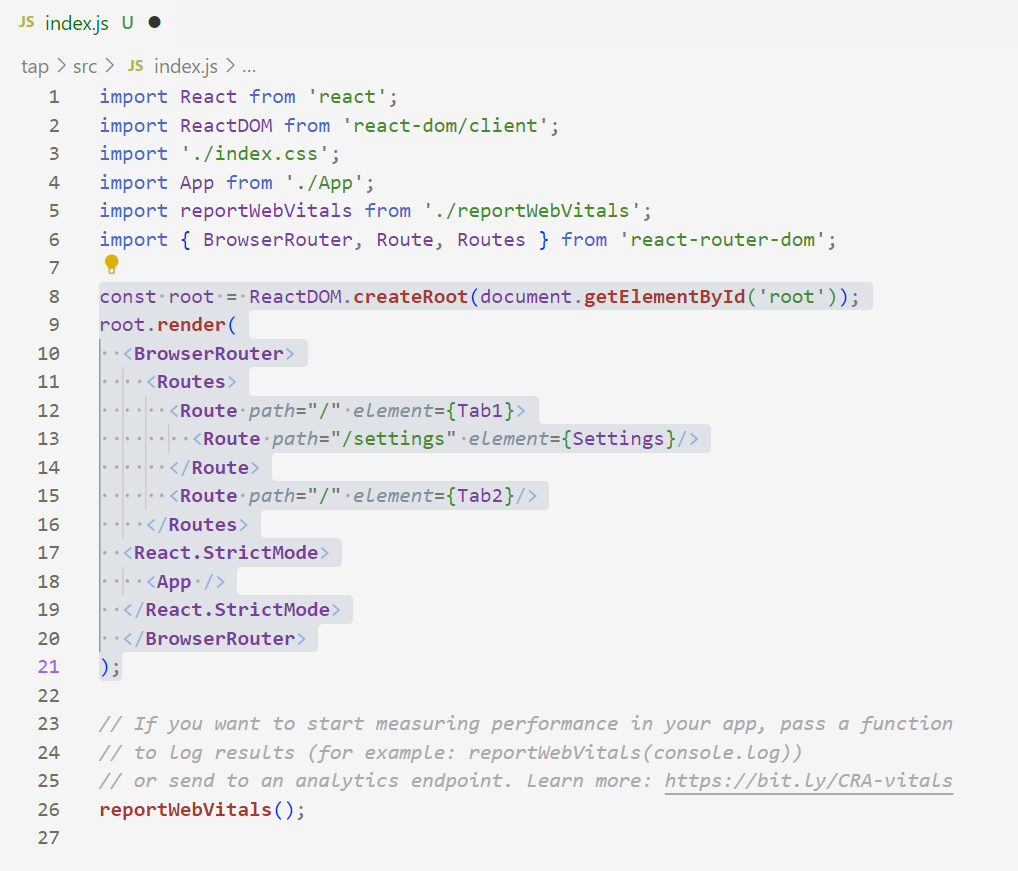 강사님이 알려주신 개념을 토대로 React-create-app을 해서 임의대로 경로를 생성해보았다. 연결이 잘 되게하는 것은 추후에 코드를 짜는 부분에서 더 다듬어보면 좋을 것 간다. 경로안에 또다른 경로를 넣는 것은 처음 배우는 것 같아 확실히 실습이 필요한 부분이다.