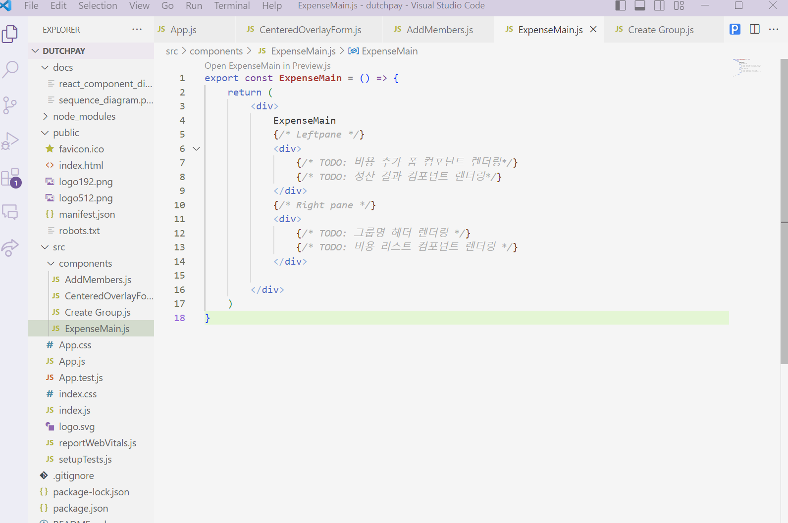 4. ExpenseMain은 위에서 본 것 같이 비용을 추가/제거하고 정산결과까지 보여주는 User flow의 거의 끝단에 있는 페이지 이다.