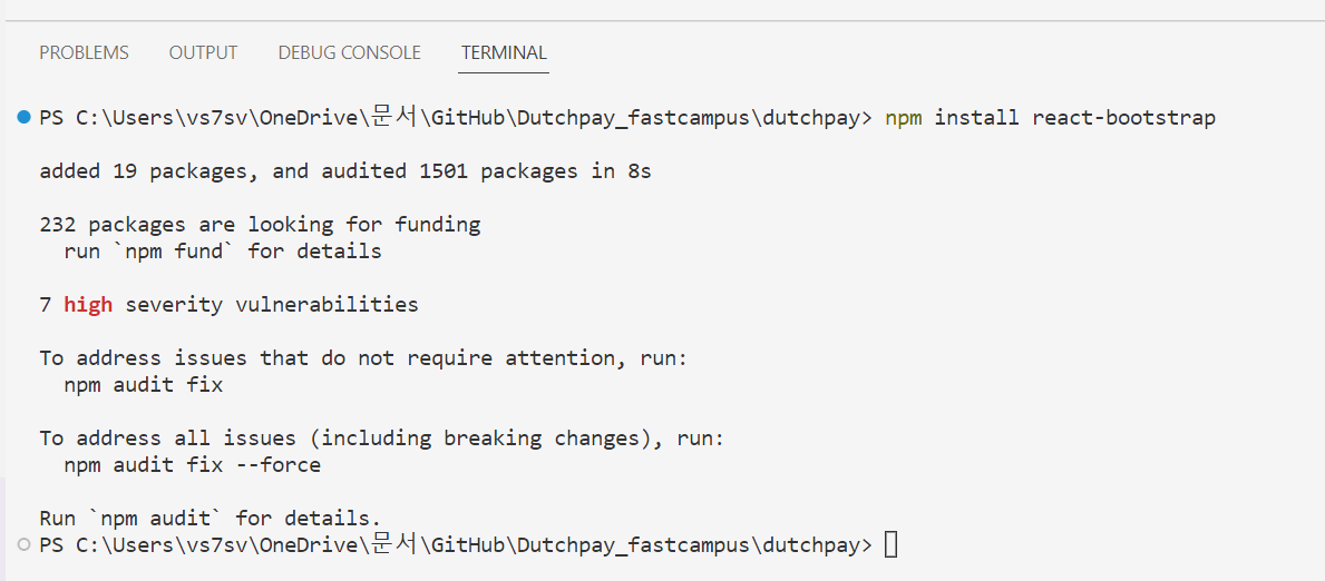 Bootstrap 설치방법을 아마 저번에.. 디자인 시간에 설명해주셨던 것 같은데 잘 기억이 나지 않아 다음과 같은 명령어로 설치해봤는데 잘 설치가 되었다..!!